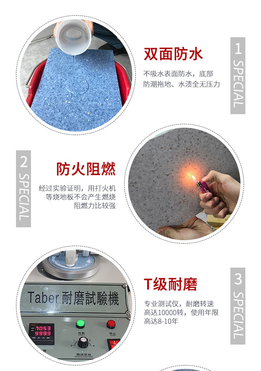 當(dāng)然,商業(yè)辦公機(jī)構(gòu),以及培訓(xùn)教育機(jī)構(gòu)也已廣泛使用,還包含養(yǎng)老院,展廳,演播室,劇場等場所。同質(zhì)透心地膠
